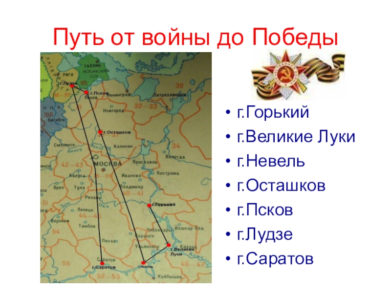и тяжелая, но мирная жизнь. Сформировался полк, пешком двинулись в направление г.Великие Луки на пополнение 10-ой Гвардейской армии. На завтра нас коротко подстригли для принятия гвардейской присяги, и сразу - в бой. Освобождали от фашистов г.Невель в составе второго Прибалтийского фронта. После освобождения города преследовали противника до станции Пустошка. Там получил первое ранение- в правую руку. После лечения в г.Осташков снова на фронт. Стояли в обороне г.Пскова. Немцы сдали его без боя. И мы маршем двинулись на границу с Латвией….