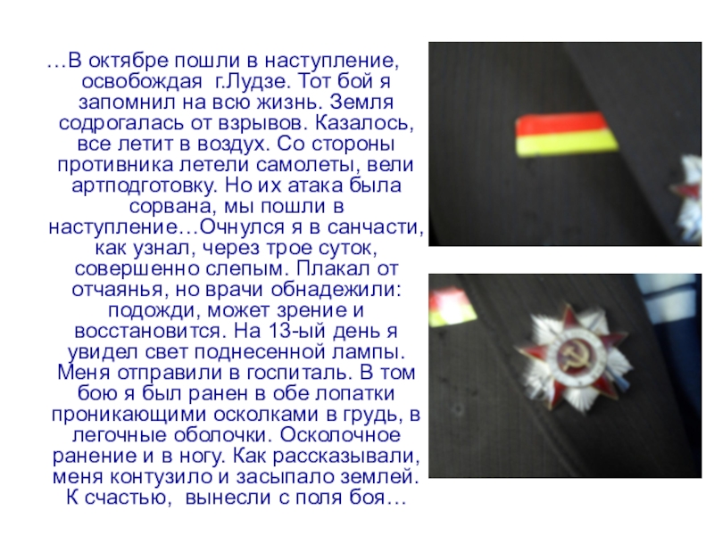 Слайд 4…В октябре пошли в наступление, освобождая г.Лудзе. Тот бой я запомнил