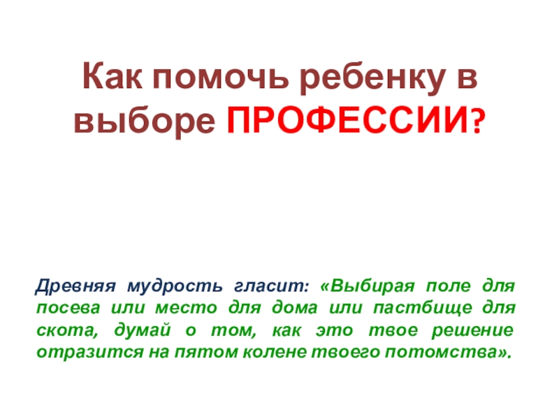 Слайд 1Как помочь ребенку в выборе ПРОФЕССИИ?