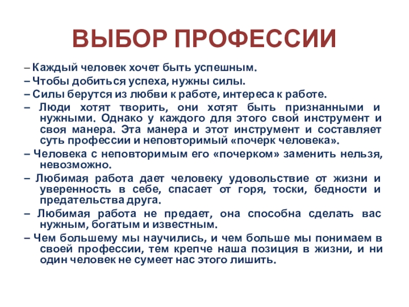 Слайд 3ВЫБОР ПРОФЕССИИ