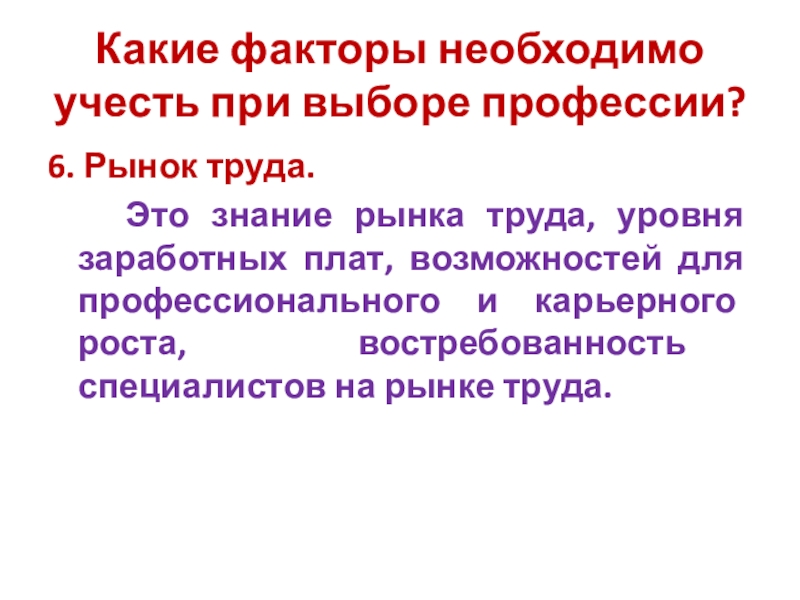 Слайд 6Какие факторы необходимо учесть при выборе профессии?
