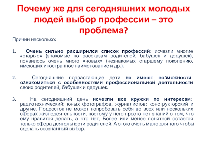Слайд 4Почему же для сегодняшних молодых людей выбор профессии – это проблема?