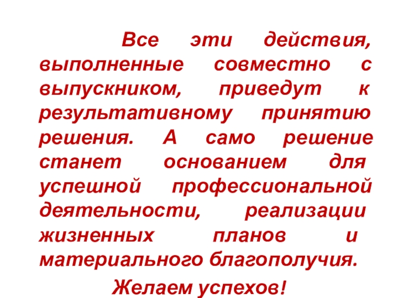 Слайд 12 Все эти действия, выполненные совместно с выпускником, приведут к