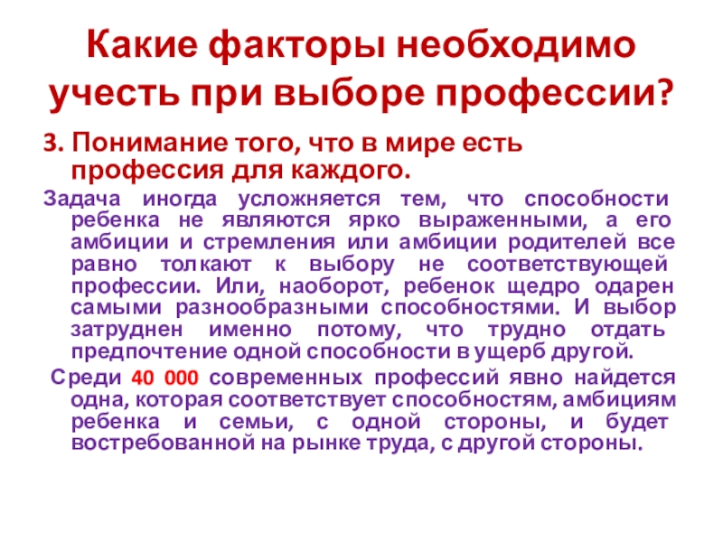 Слайд 11Какие факторы необходимо учесть при выборе профессии?