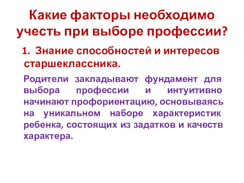 Слайд 10Какие факторы необходимо учесть при выборе профессии?
