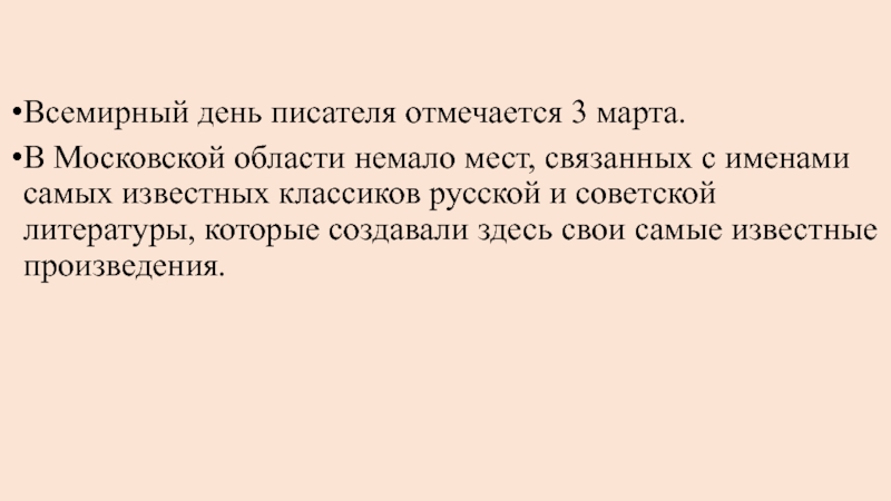 Слайд 2В Московской области немало мест, связанных с именами самых известных классиков