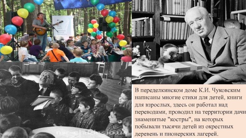 для взрослых, здесь он работал над переводами, проводил на территории дачи знаменитые "костры", на которых побывали тысячи детей из окрестных деревень и пионерских лагерей.