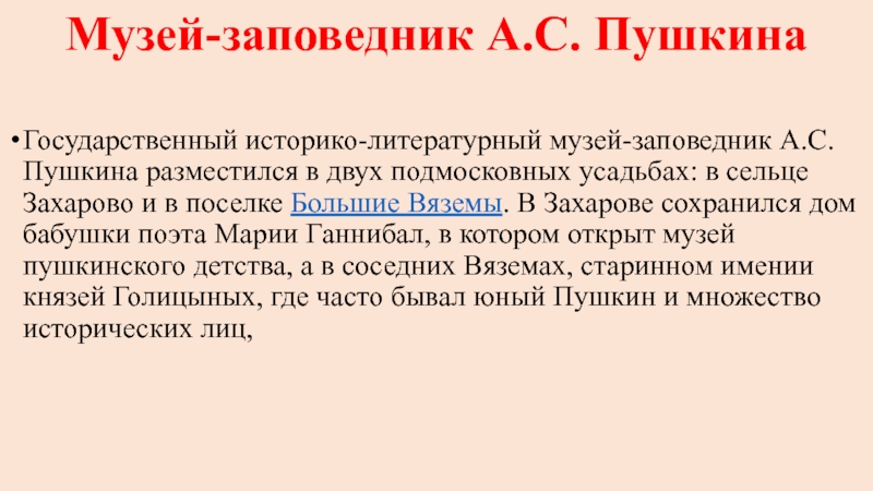 Слайд 8Музей-заповедник А.С. Пушкина