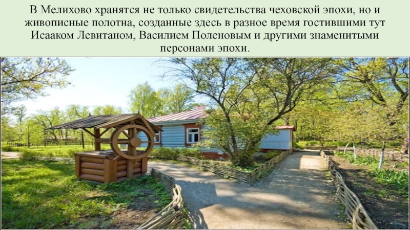 Слайд 7В Мелихово хранятся не только свидетельства чеховской эпохи, но и живописные
