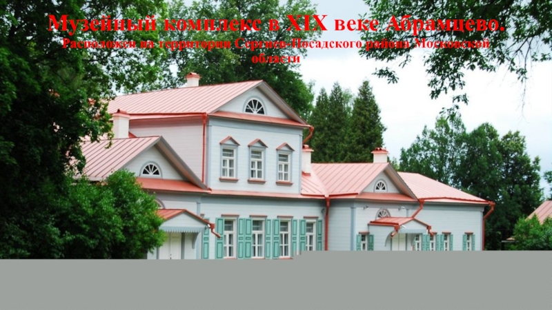 Слайд 33Музейный комплекс в XIX веке Абрамцево. Расположен на территории Сергиев-Посадского района