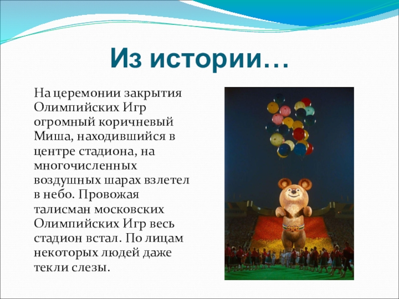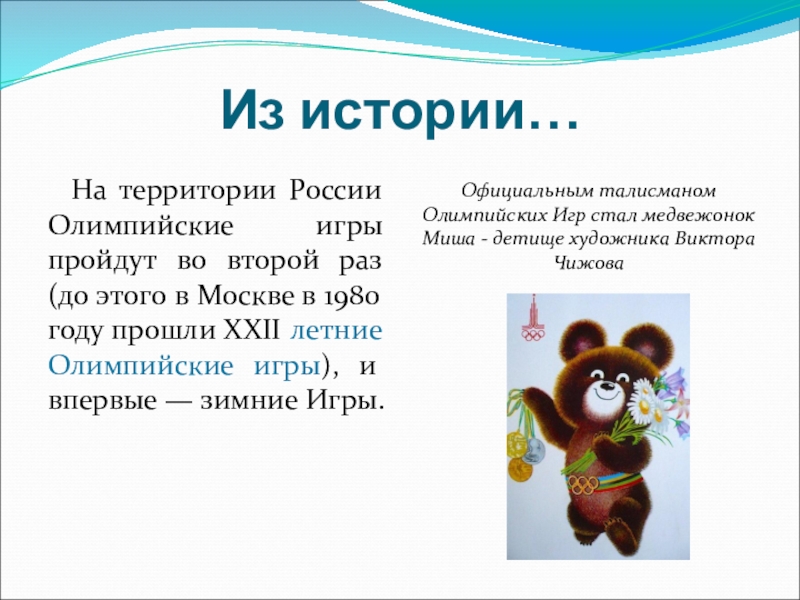 Официальным талисманом Олимпийских Игр стал медвежонок Миша - детище художника Виктора Чижова