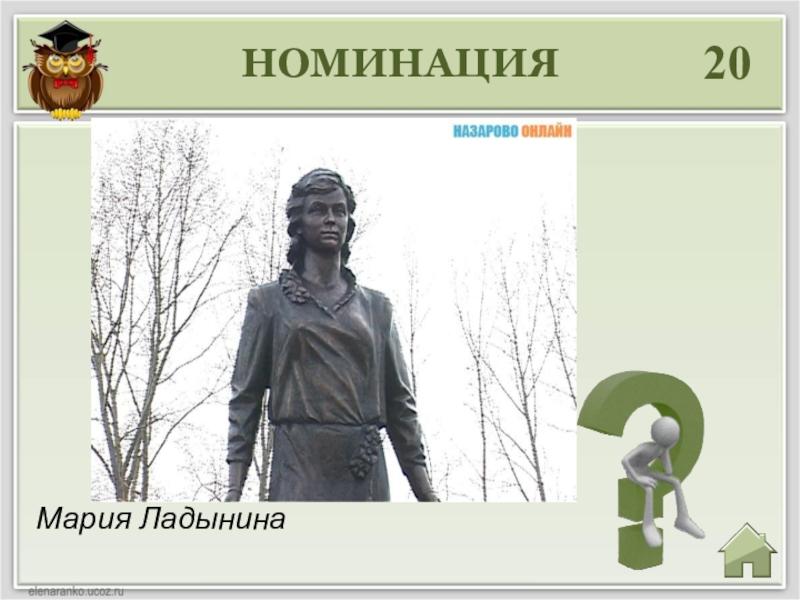 НОМИНАЦИЯ50Марина Алексеевна ЛадынинаРодиной какой известной советской актрисы был город Назарово?