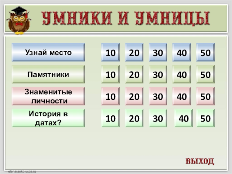1020304050102030405010203040501020304050Узнай местоИстория в датах?ПамятникиЗнаменитые личности