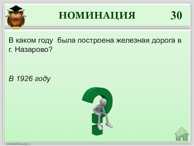 НОМИНАЦИЯ30В 1926 годуВ каком году была построена железная дорога в г. Назарово?