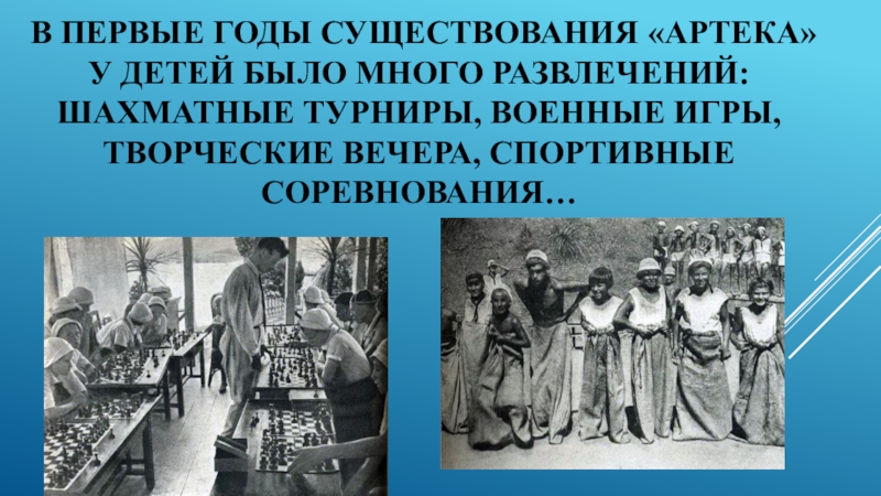 Слайд 4В первые годы существования «Артека» у детей было много развлечений: шахматные