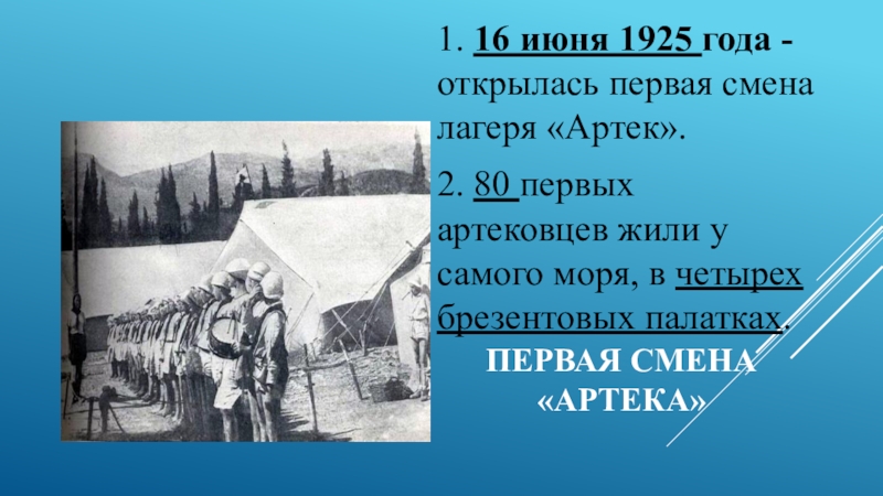 Слайд 3Первая смена «Артека»