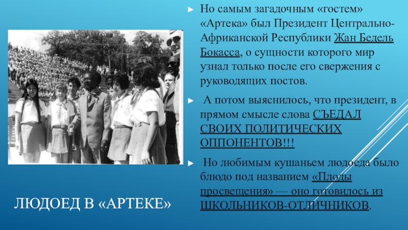 Но самым загадочным «гостем» «Артека» был Президент Центрально-Африканской Республики