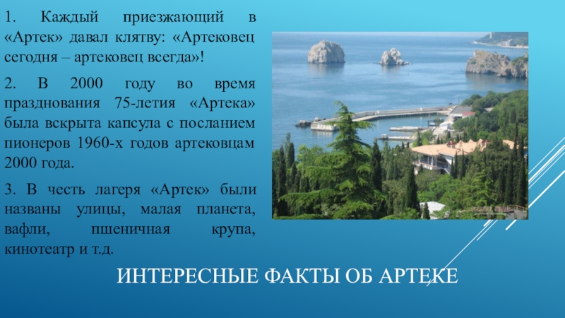 Слайд 18Интересные факты об Артеке
