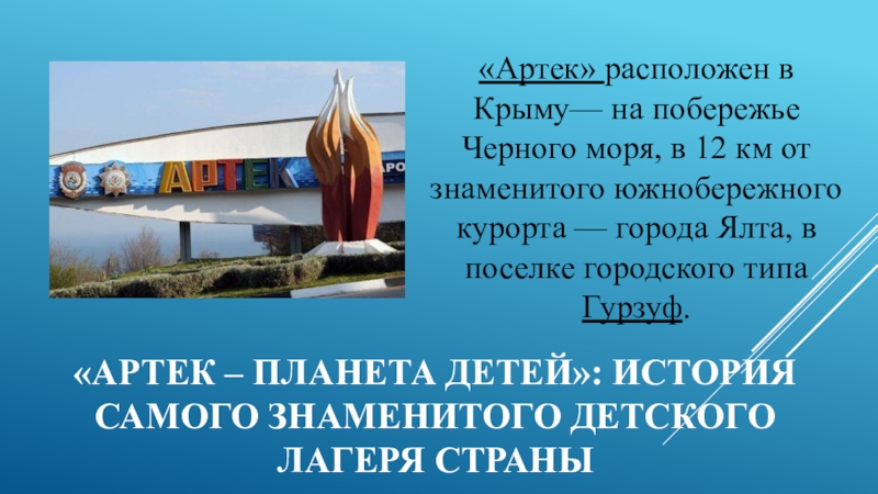 Слайд 1«Артек – планета детей»: история самого знаменитого детского лагеря страны