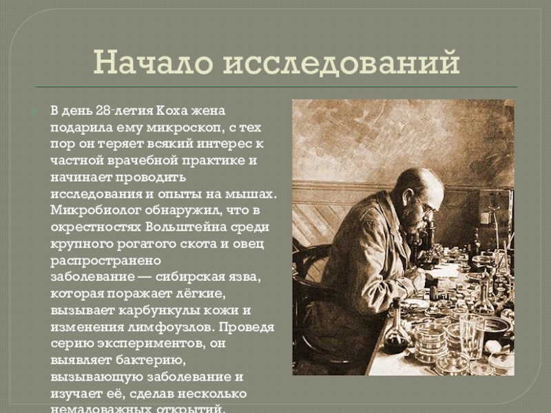 В день 28‑летия Коха жена подарила ему микроскоп, с тех