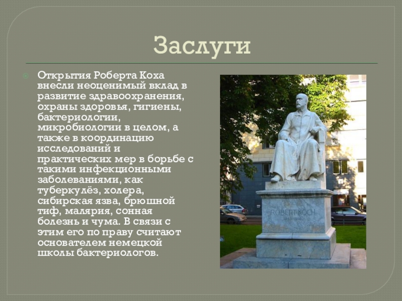 Открытия Роберта Коха внесли неоценимый вклад в развитие здравоохранения, охраны здоровья,