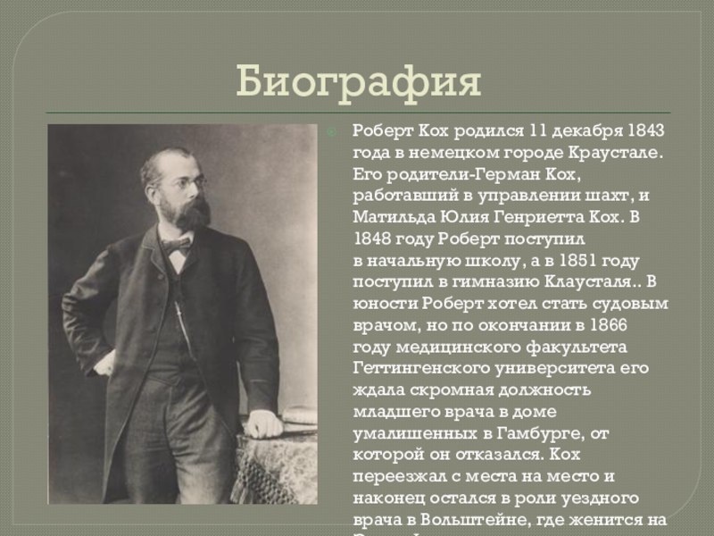 Роберт Кох родился 11 декабря 1843 года в немецком городе Краустале.