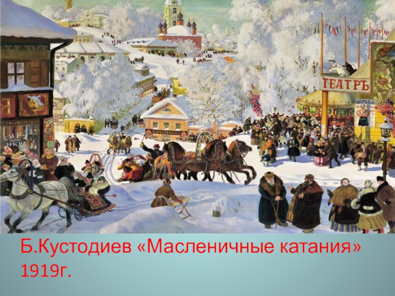 Слайд 6Б.Кустодиев «Масленичные катания» 1919г.