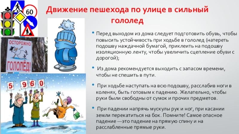 Слайд 3Движение пешехода по улице в сильный гололед