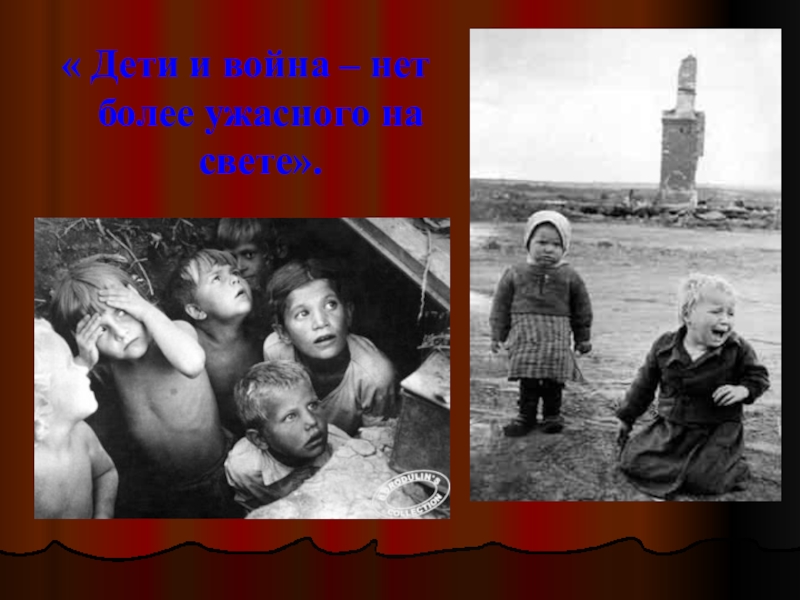 Слайд 7« Дети и война – нет более ужасного на свете».