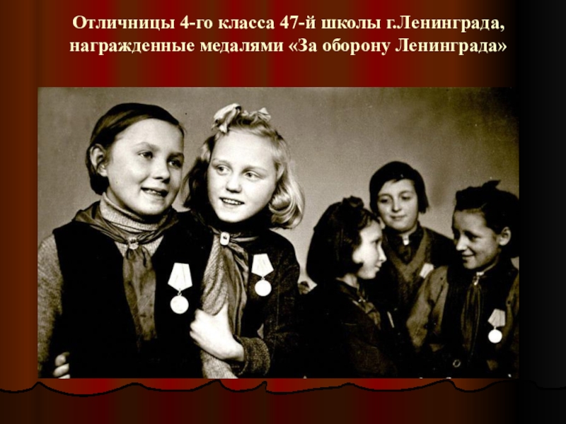 Слайд 60Отличницы 4-го класса 47-й школы г.Ленинграда, награжденные медалями «За оборону Ленинграда»