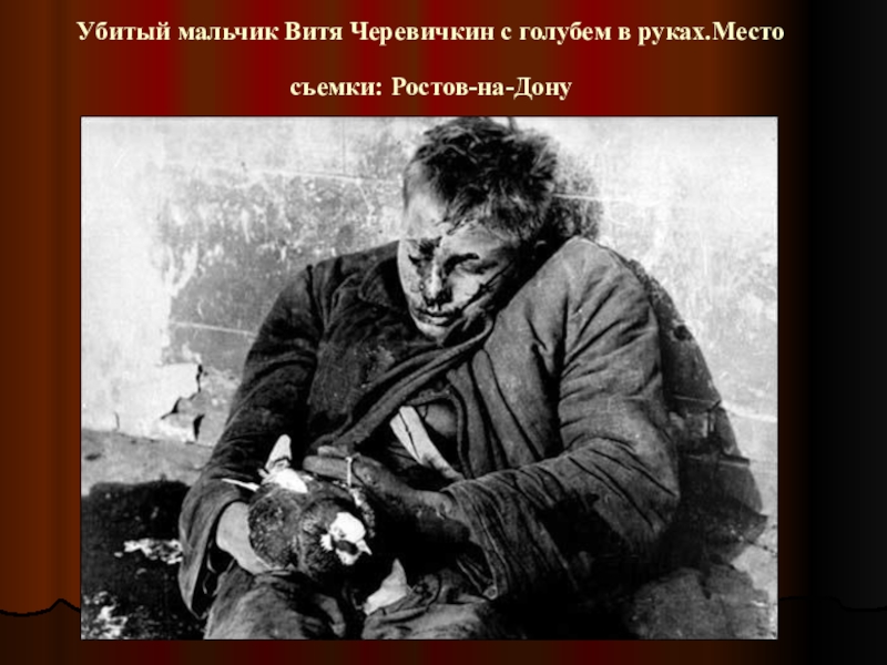 Убитый мальчик Витя Черевичкин с голубем в руках.Место съемки: Ростов-на-Дону