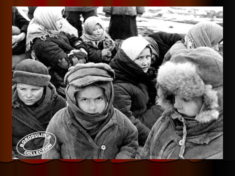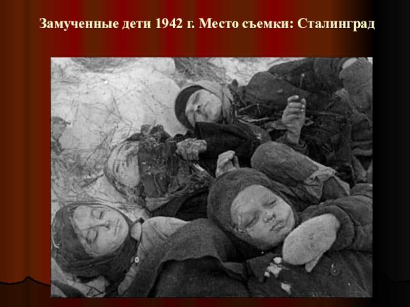 Слайд 17Замученные дети 1942 г. Место съемки: Сталинград