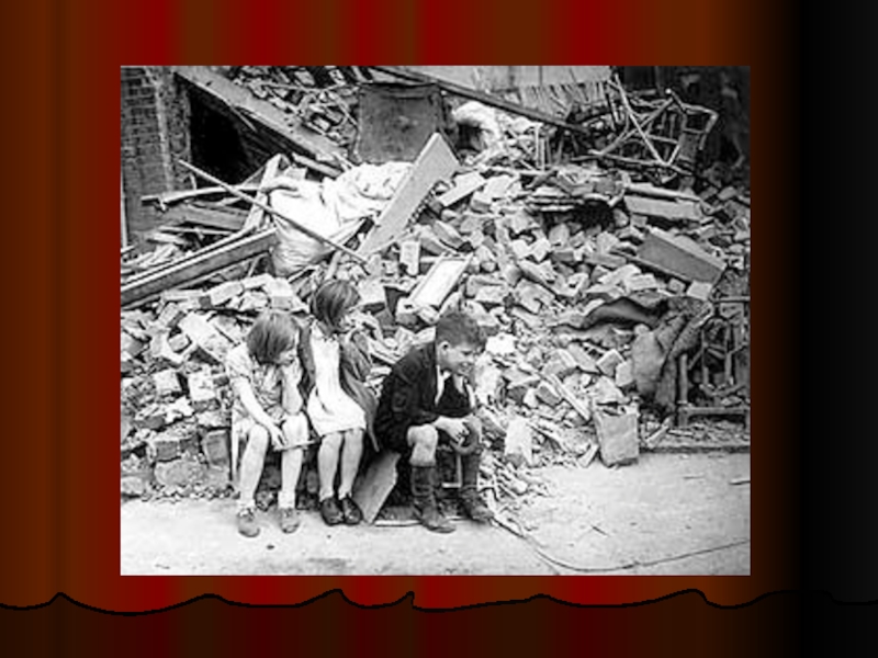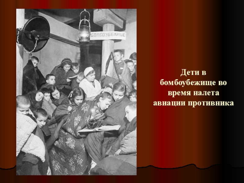 Слайд 40Дети в бомбоубежище во время налета авиации противника