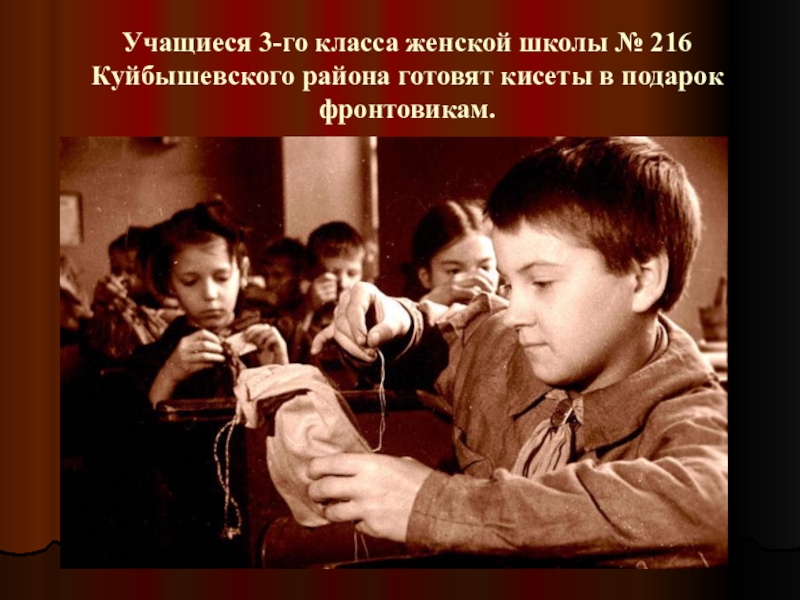 Слайд 56Учащиеся 3-го класса женской школы № 216 Куйбышевского района готовят кисеты