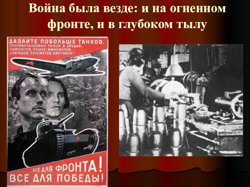 Слайд 65Война была везде: и на огненном фронте, и в глубоком тылу