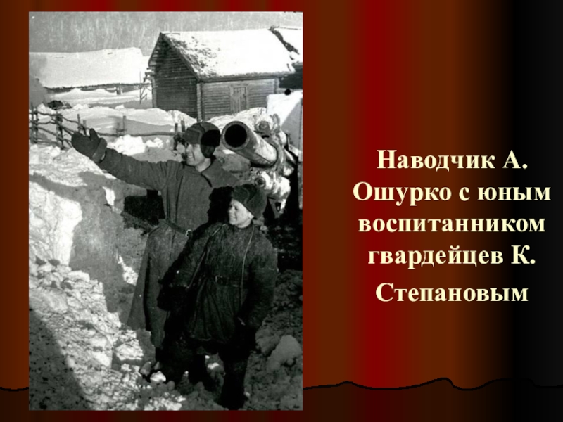 Слайд 49Наводчик А. Ошурко с юным воспитанником гвардейцев К.Степановым