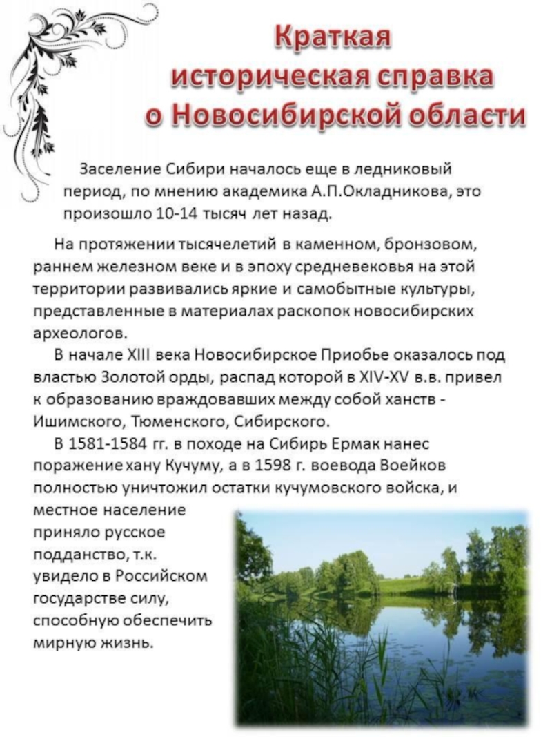 Презентация, доклад для классного часа на тему Исторические памятники Новосибирской области