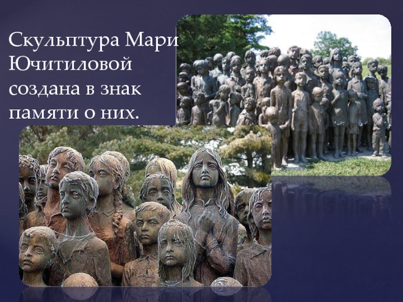 Слайд 3Скульптура Мари Ючитиловой создана в знак памяти о них.
