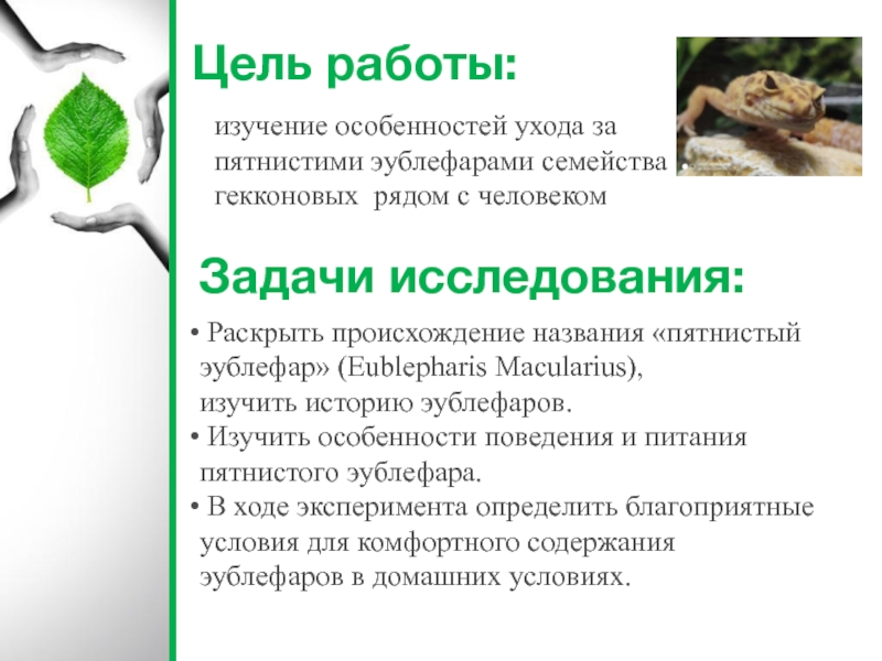 Изучить особенности поведения и питания пятнистого эублефара.