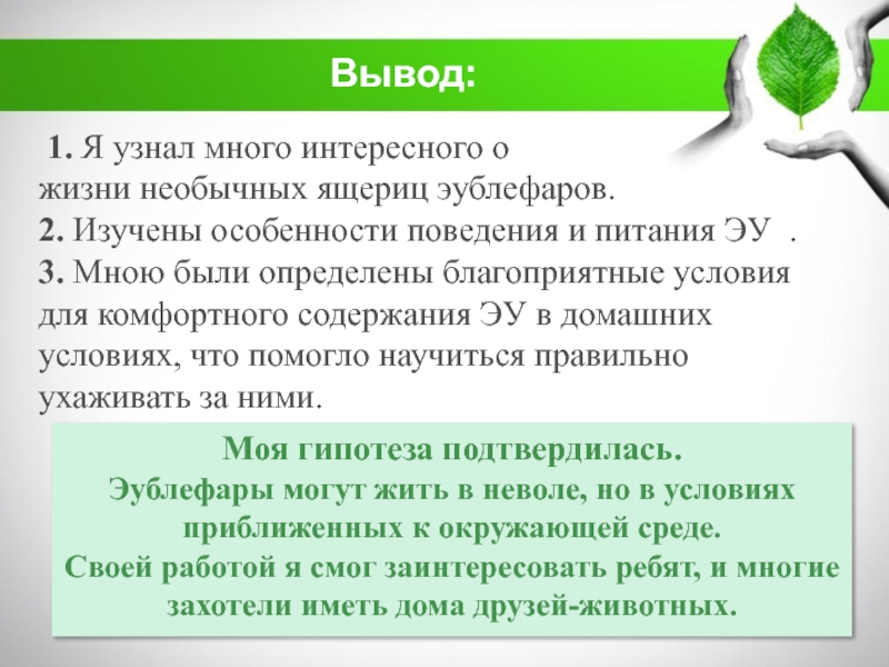 В ходе эксперимента определить благоприятные условия для комфортного содержания эублефаров в домашних условиях.