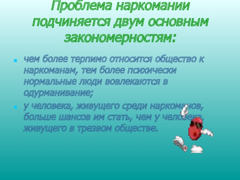 Слайд 5Проблема наркомании подчиняется двум основным закономерностям:
