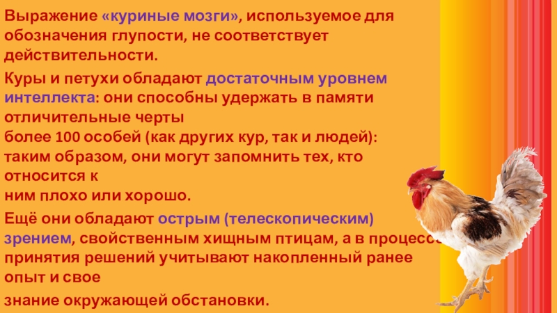 Выражение «куриные мозги», используемое для обозначения глупости, не соответствует действительности.