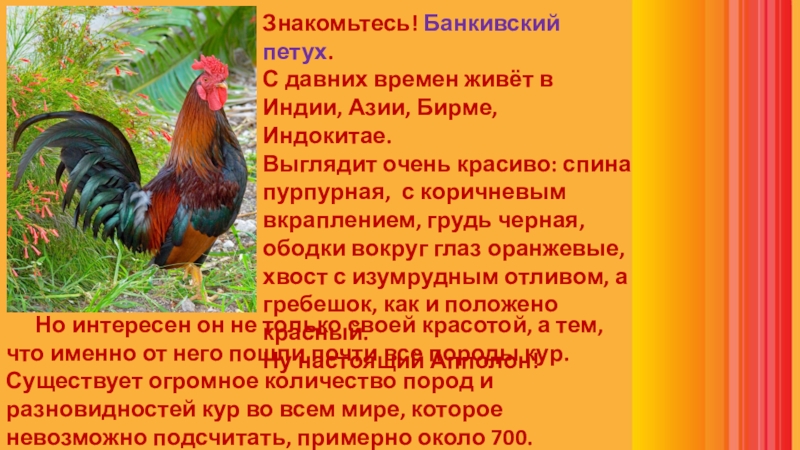 Слайд 11Петух - гордый красавец и бесстрашный боец!