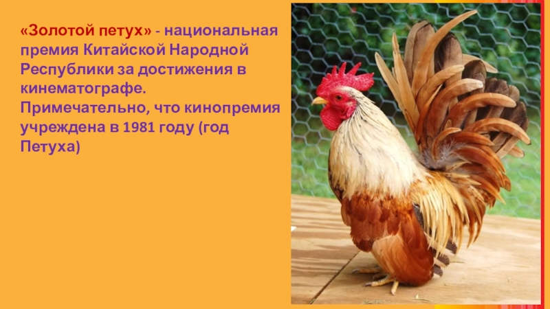 Слайд 21«Золотой петух» - национальная премия Китайской Народной Республики за достижения в