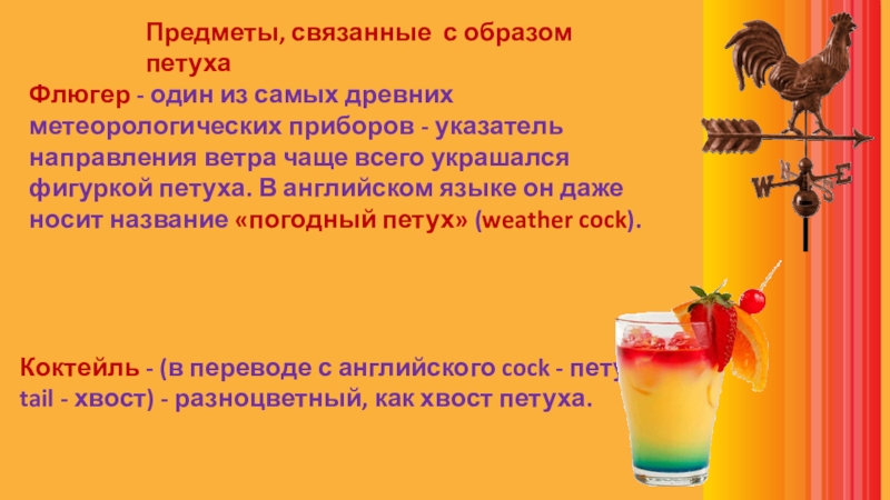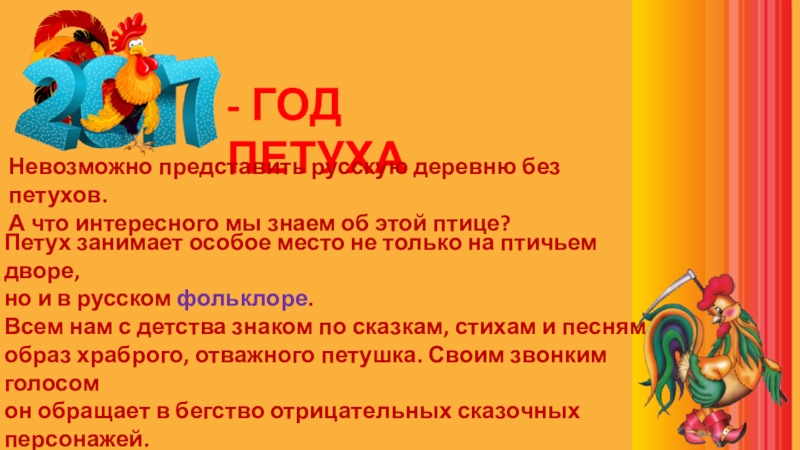 Слайд 6Слово «петух» - производное от хорошего слова «петь».