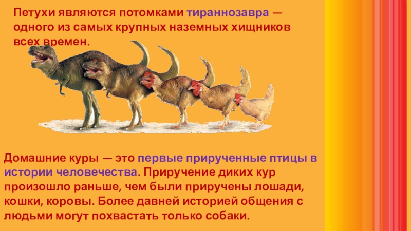 Слайд 17Петухи являются потомками тираннозавра — одного из самых крупных наземных хищников