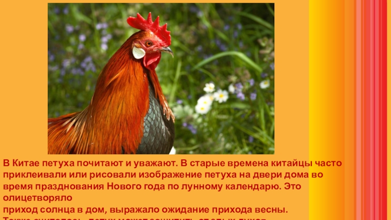 Слайд 24В Китае петуха почитают и уважают. В старые времена китайцы часто