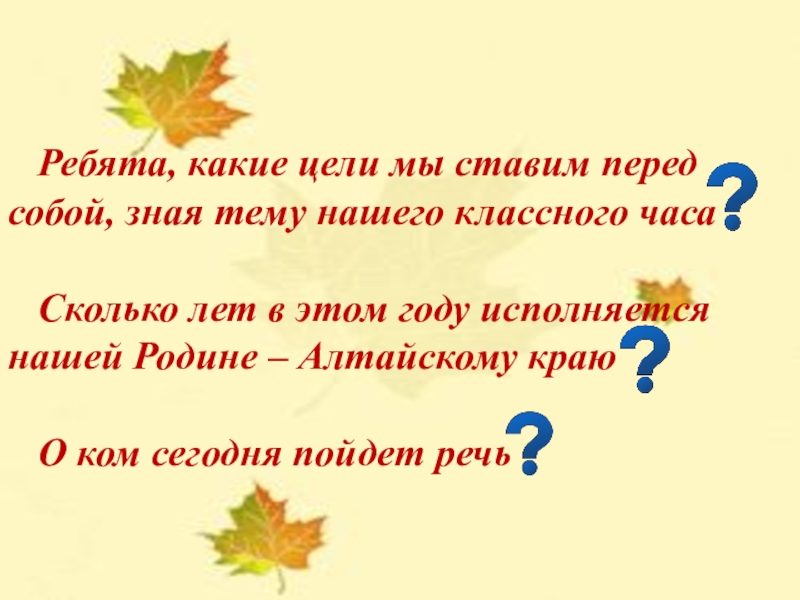 Ребята, какие цели мы ставим перед собой, зная тему нашего классного часа