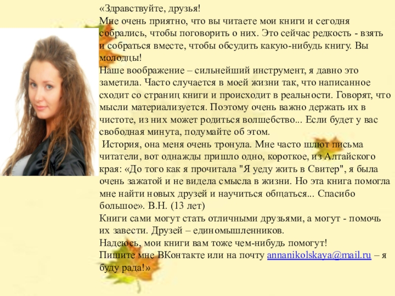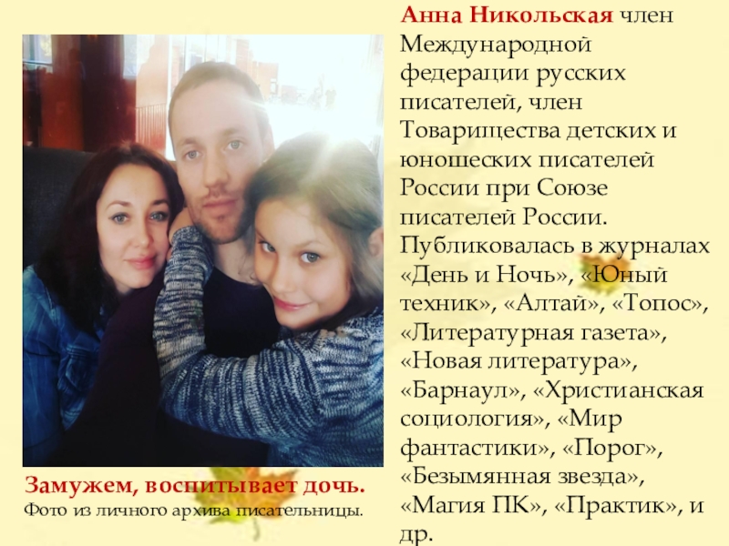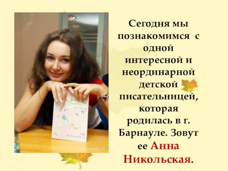 Сегодня мы познакомимся с одной интересной и неординарной детской писательницей, которая родилась в г. Барнауле. Зовут ее Анна Никольская.