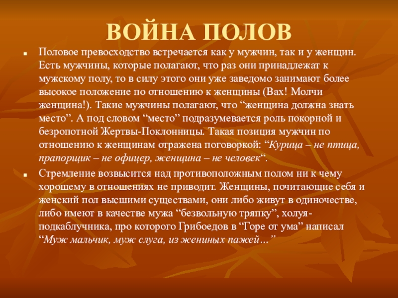 Слайд 8ВОЙНА ПОЛОВ